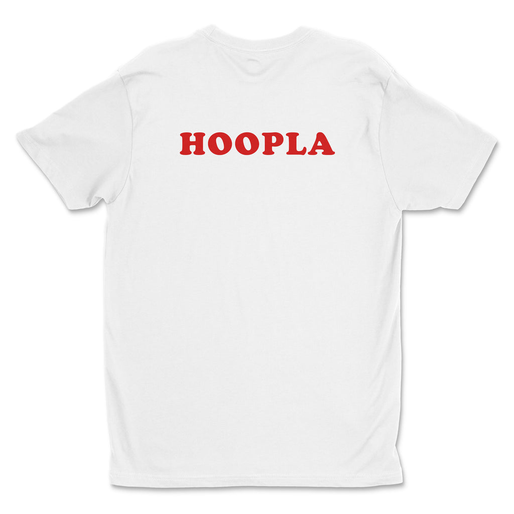 A t-shirt to coincide with Weird Nightmare's Hoopla.Two-sided design printed on a white t-shirt.